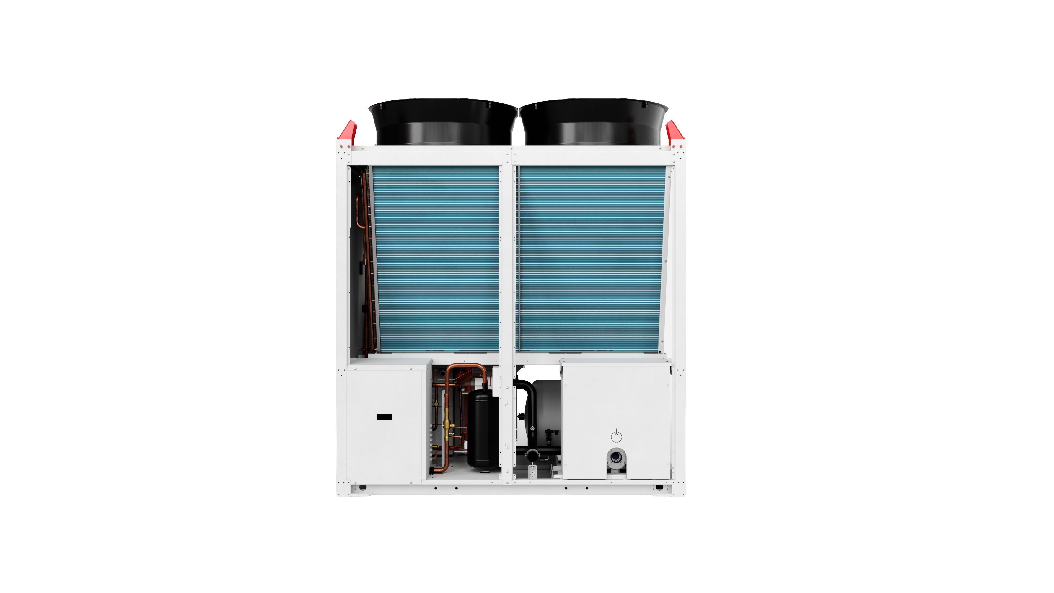 Air source reversible heat pump for outdoor installation, optimized in heating mode, with variable speed Scroll compressors, optimized for R32 in a single-circuit configuration, source-side heat exchanger made with copper tubes and aluminum fins, braze welded plate heat exchanger, electronic expansion valve as standard, variable speed axial-flow fans with BLDC motor and external inverter. Flexible and reliable unit; it easily adapts to different thermal load conditions thanks to the precise temperature control together with the use of inverter technology. The high performance levels, both full and partial loads, is achieved thanks to the unit’s accurate design and to the use of fixed speed motor together with variable speed (inverter) motor.