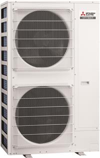 This three phase, double fan range of R410A VRF Air-Sourced Outdoor Units feature scroll hermetic compressors and cross-fin/copper tube heat exchangers.