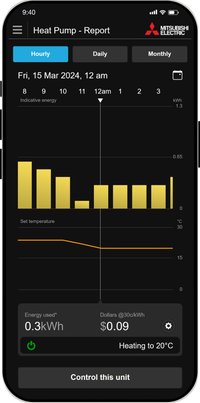 You can monitor your savings in the Mitsubishi Electric Wi-Fi Control App. Click here for more tips.